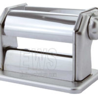 Por lo tanto, la laminadora de pasta manual y la matriz dúplex para hacer tagliatelle y fettuccine ya están incluidas en el paquete. Además, está la abrazadera para fijar la máquina a la mesa de trabajo, la manivela con el mango de madera y el vertedor de pasta de acero cromado.